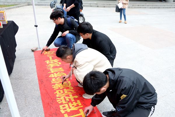 活动伊始,同学们通过现场摆放的海报以及活动人员的讲解,了解了关于“地球一小时”活动和环境保护的相关知识,随后在横幅上签上自己的名字,积极响应“地球熄灯一小时”的号召。活动中同学们积极配合、主动参与,增长了知识。