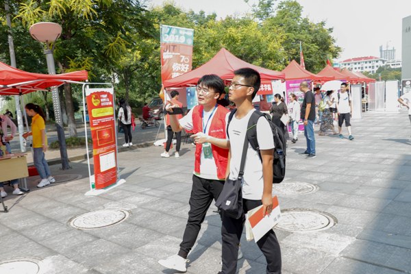 在大学生活动中心一楼顺利完成2019级新生迎接工作。av解说
