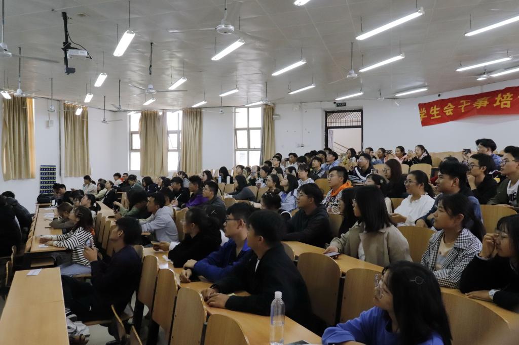 学生会干事培训大会在6300召开。本次活动由组织部干事郭洪江主持,学生会副主席赵明珠(主持工作),学生会副主席金荣泰、施玲艳、王览月,各部部长和副部长,各部门新进干事参加本次活动。