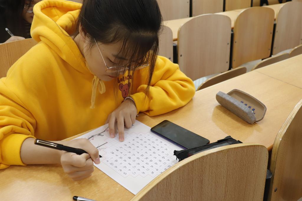 在3103举办“笔述爱国情,材承国粹美”主题书法大赛。本次比赛由组织部部长主持,19级新生作为参赛者参与本次比赛,全院师生均可对作品进行投票。