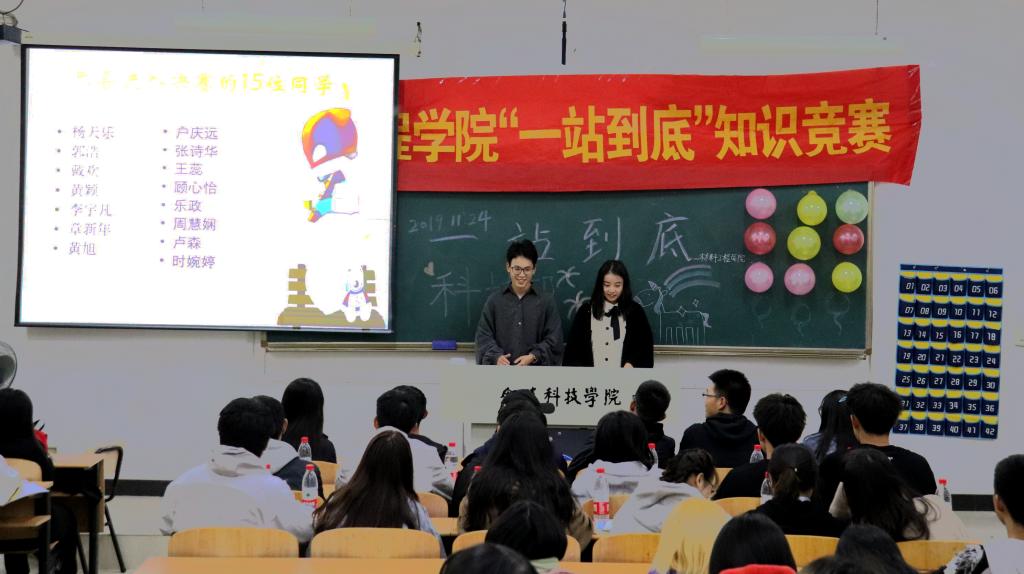 在5103举办“一站到底”知识竞赛。本次知识竞赛由科技部干事陈佩佩和张杰主持,学生会副主席金荣泰、各部长和院学生代表观看本次活动。
