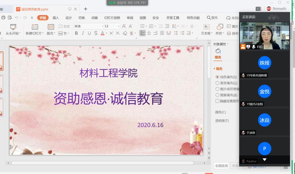 开展了 “资助感恩,诚信教育”线上会议,会议由辅导员华岚芳老师主持,学院各班班长参加。华老师指出,2020年贫困生资格认证取消了旧版的《江苏省家庭经济情况调查表》,改由学生本人根据家庭经济情况书写的个人承诺书。会议还对毕业生贷款确认工作进行了布置,强调同学务必据实填写信息。华老师提出,希望班长将会议重点和会议精神传达给每位同学,让同学们深刻意识到诚信是为人做事的基本准则,日常生活和学习中需坚持践行诚信。