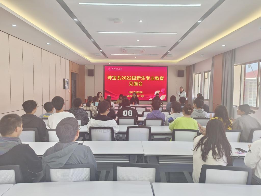 2022级珠宝系新生在学院会议室迎来了入学专业教育的第一课。会议由院综合办公室副主任王欢老师主持,全体珠宝系新生、专业教师出席。思想的火花在碰撞中升华,不时展现出精彩纷呈的交流场面。
