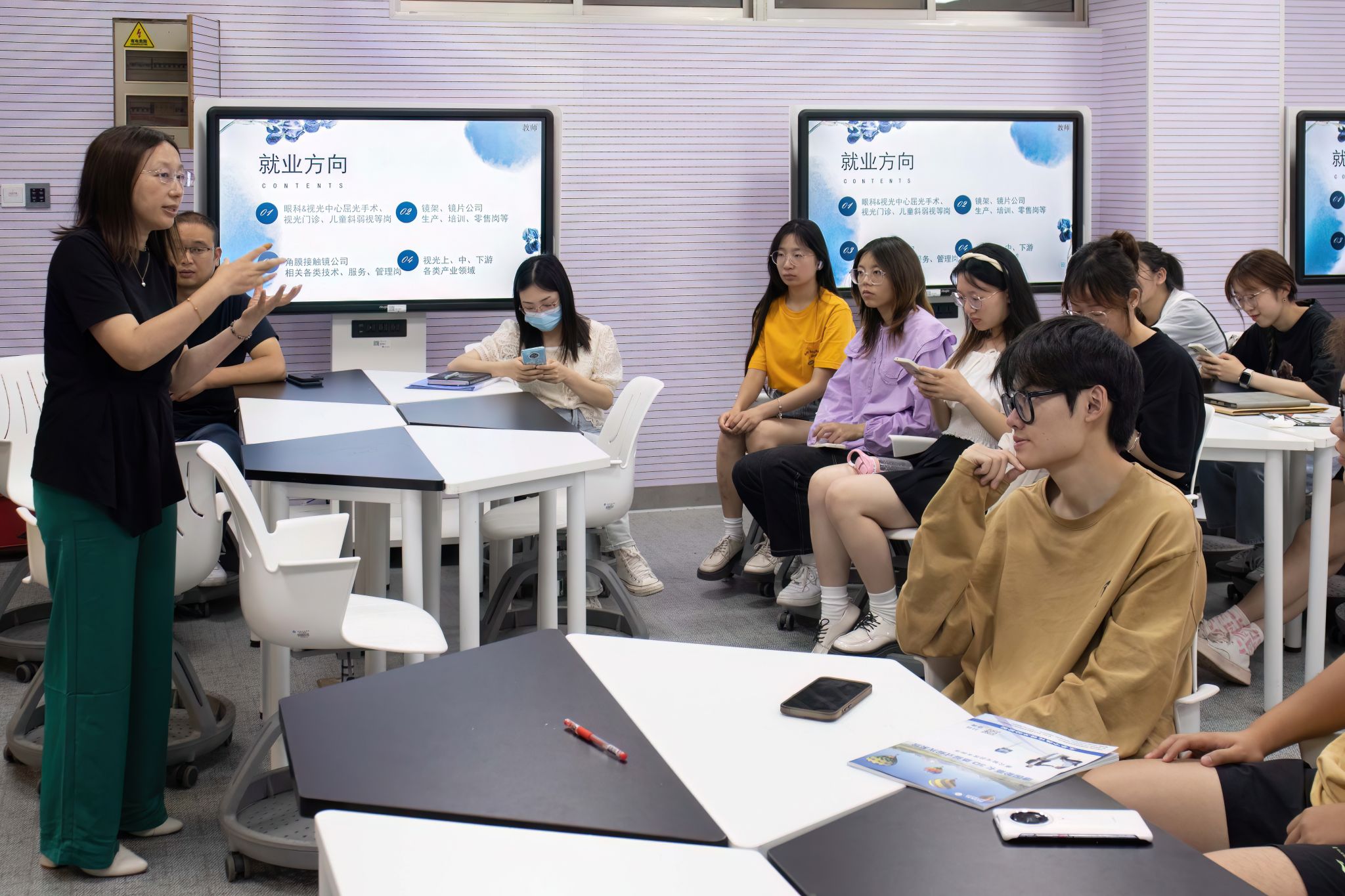 视光工程系王玲副教授主讲,辅导员华岚芳与21材料科学与工程(视光材料与应用)全体学生参加。