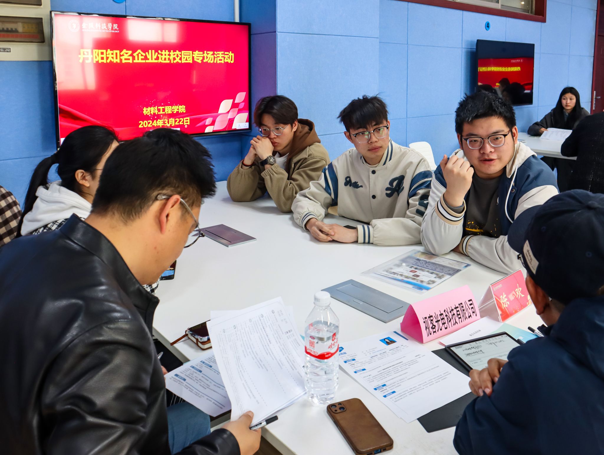 党委副书记韩铖、学工办主任许倩颖、团总支书记邵云龙出席此次活动,活动由院就业干事华岚芳老师主持,数位人力资源经理莅临av解说