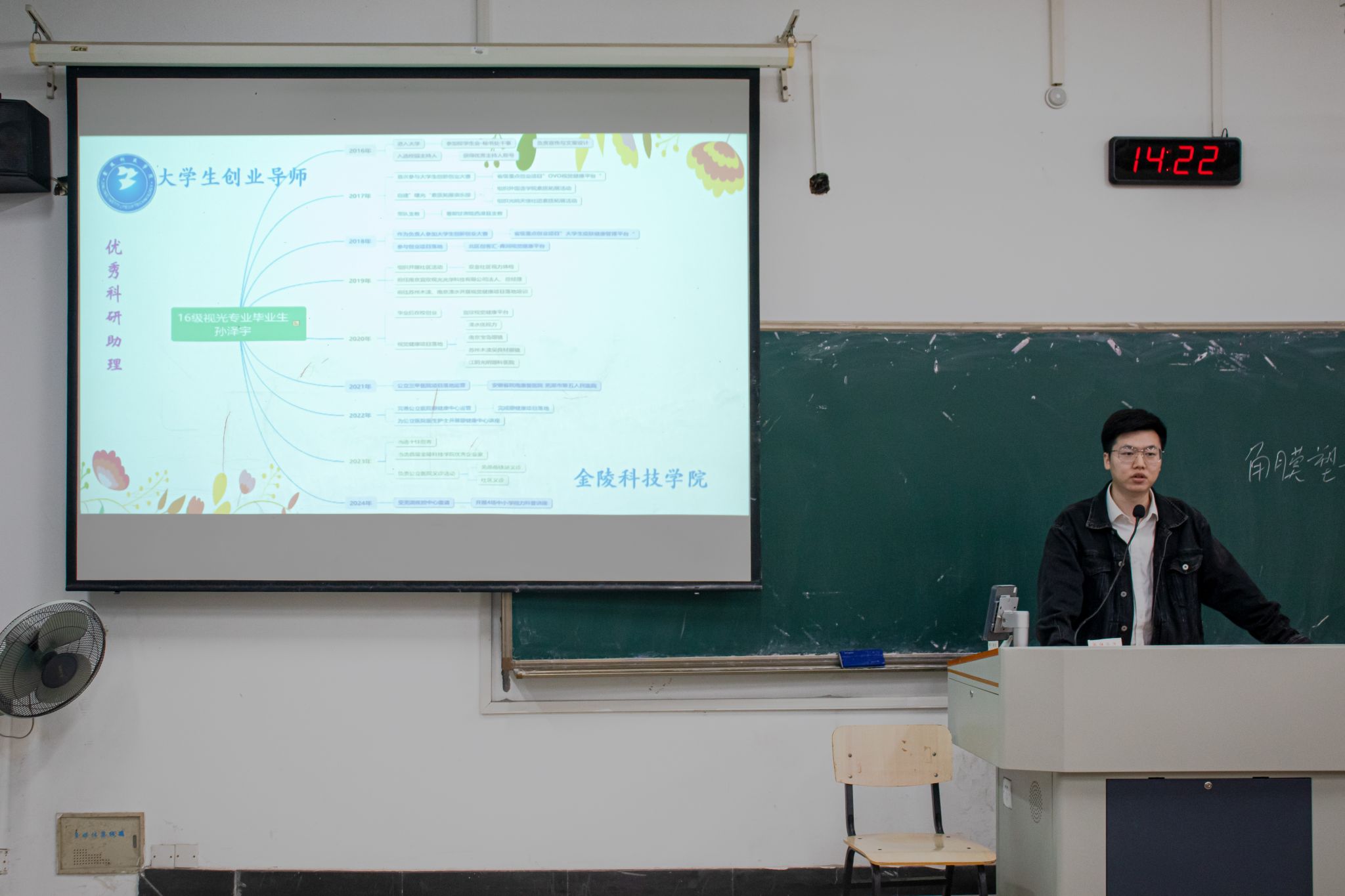 校友孙泽宇向同学们分享大学参加项目工作的经验,强调了提升职业规划及创业能力的重要性。