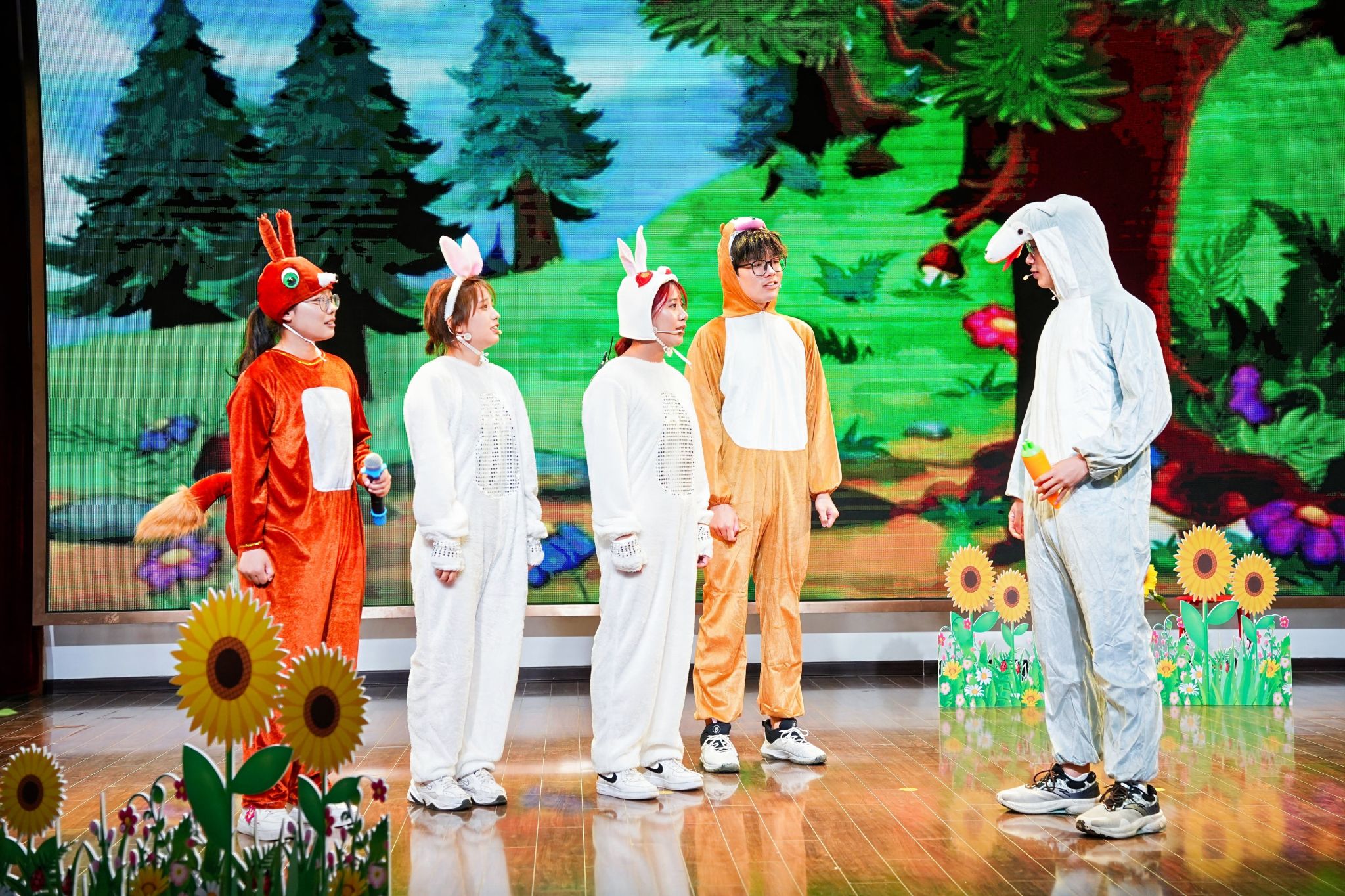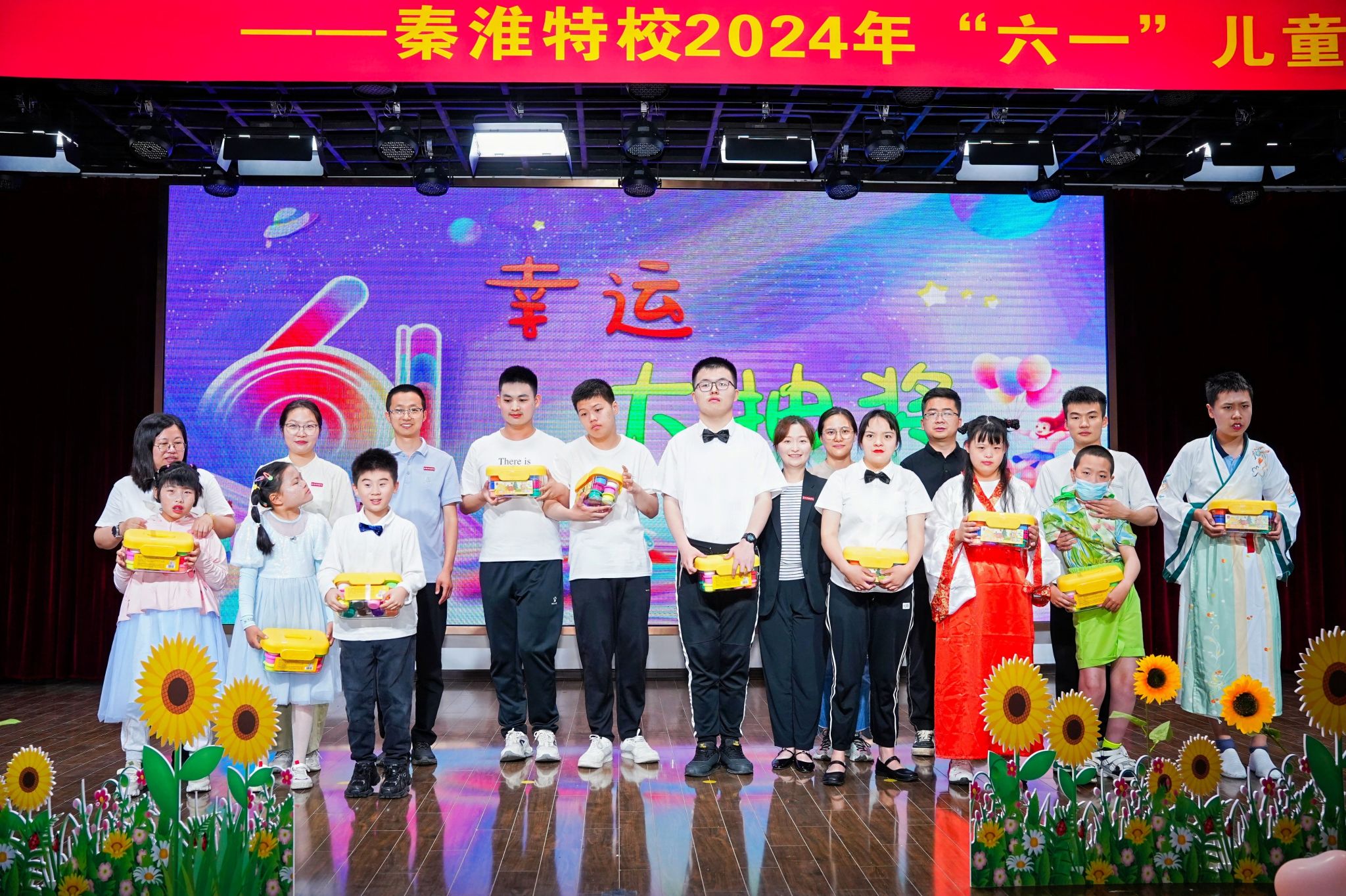 精彩纷呈的六一汇演在孩子们的欢声笑语中拉开帷幕,心理社的志愿者们共同演绎了儿童心理情景剧《猜猜我有多爱你》。表演刚一开场志愿者就为孩子们送上惊喜小礼品,将气氛推至高潮,舞台上小动物们间的故事也让孩子们在“感受爱、懂得爱”的同时,更学会了“分享爱、表达爱”。接着,党委副书记韩铖与秦淮特殊教育学校校长张慧共同为“方舟”大学生志愿服务基地揭牌。韩铖在发言中对秦淮特殊教育学校对av解说
