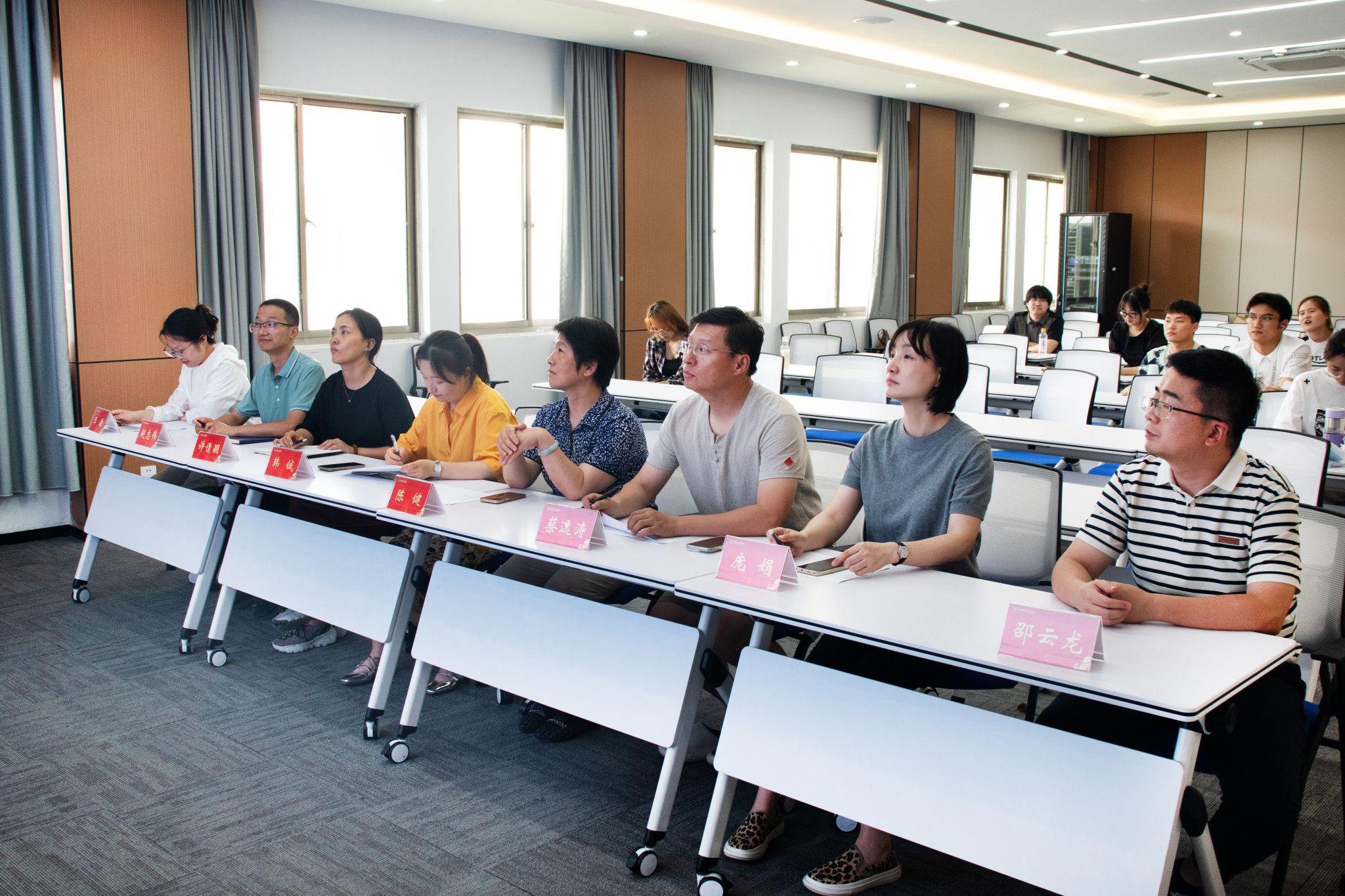 在知行楼A506召开辅导员助理述职考核会。院党委书记陈健、党委副书记韩铖、复材系主任庞娟、珠宝系主任蔡逸涛、辅导员及辅导员助理参加了考核会。