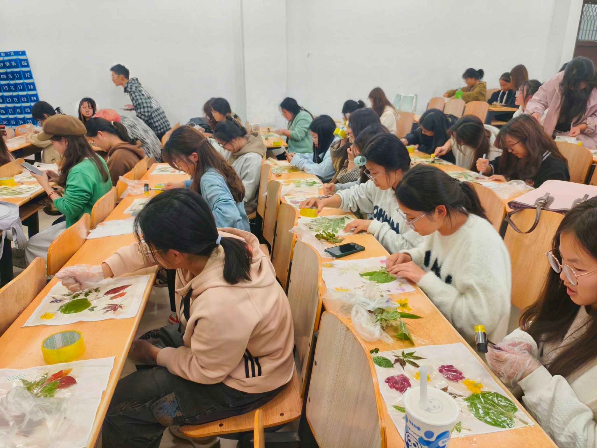 于11月13日下午在3102教室举办了秋季植物拓印活动。本次活动共50余名同学报名参加。