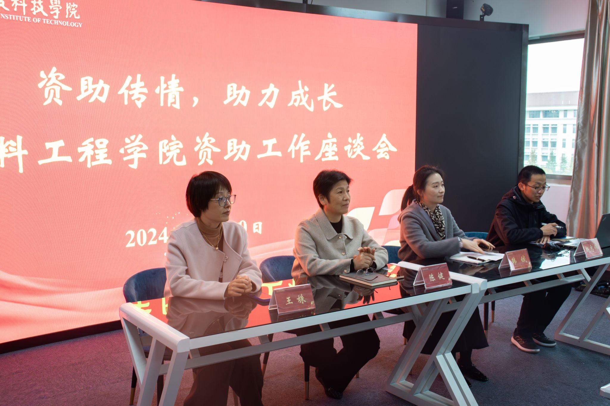 党委书记陈健、党委副书记韩铖、学生代表参加了本次座谈会。会议由院资助专项工作辅导员赵志伟主持。