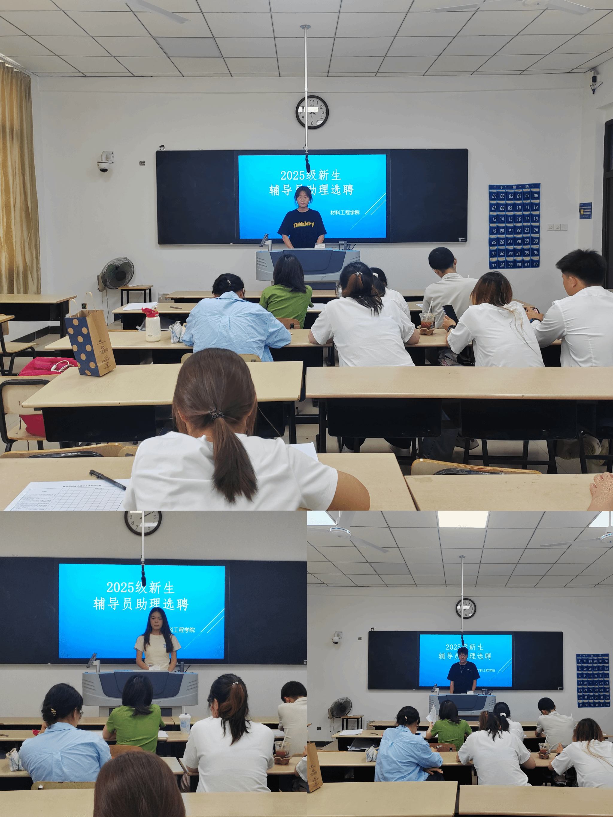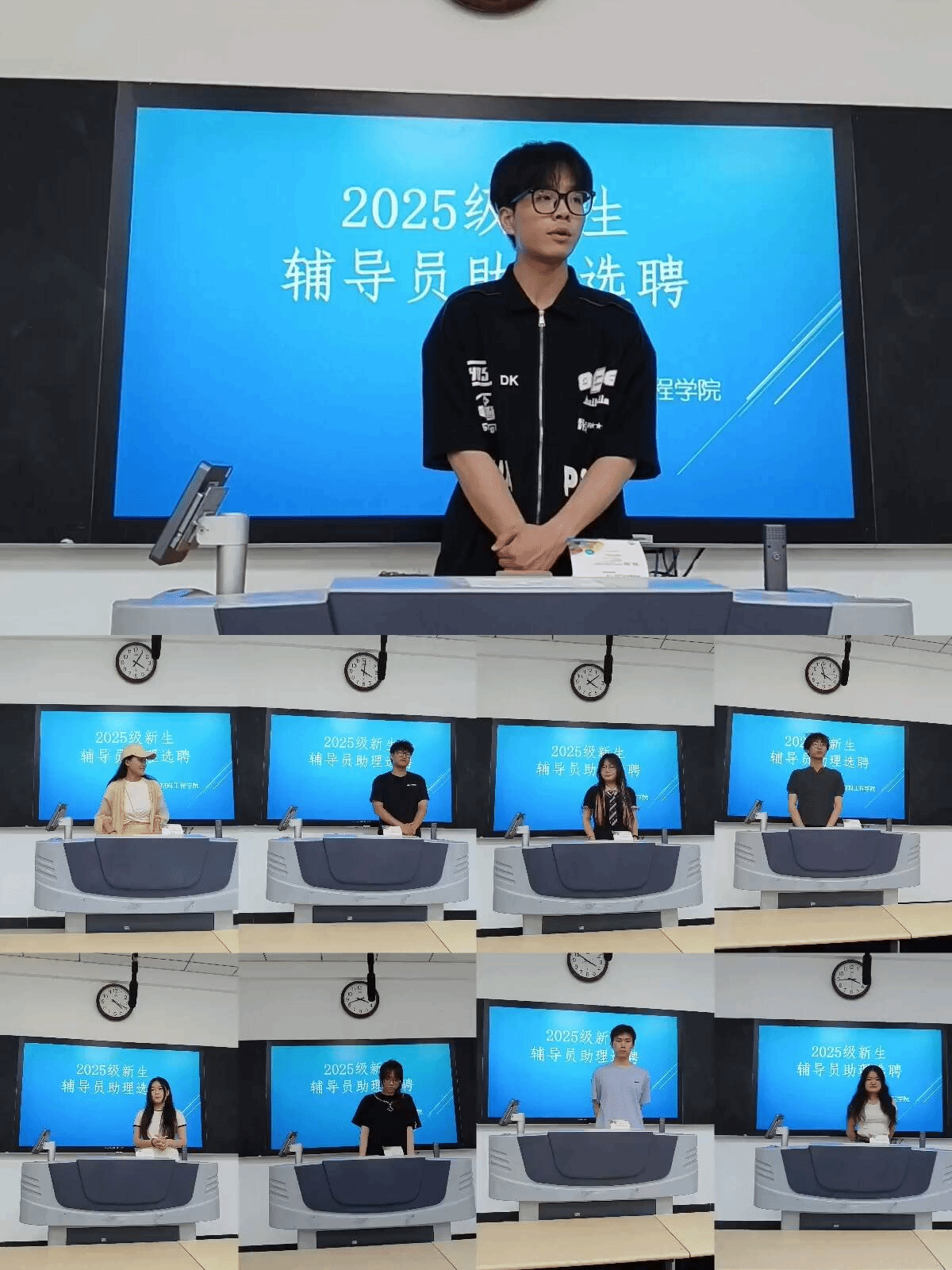 在8105教室举行2025级辅导员助理选聘面试,来自2023级、2024级的40余名优秀学子参与竞选。本次选拔秉持“实事求是、客观公正、民主公开、注重实绩”的原则,旨在通过选拔兼具学业能力与管理素养的学生骨干,强化低年级学风建设与思想引领,构建“高年级带低年级”的全员育人格局。