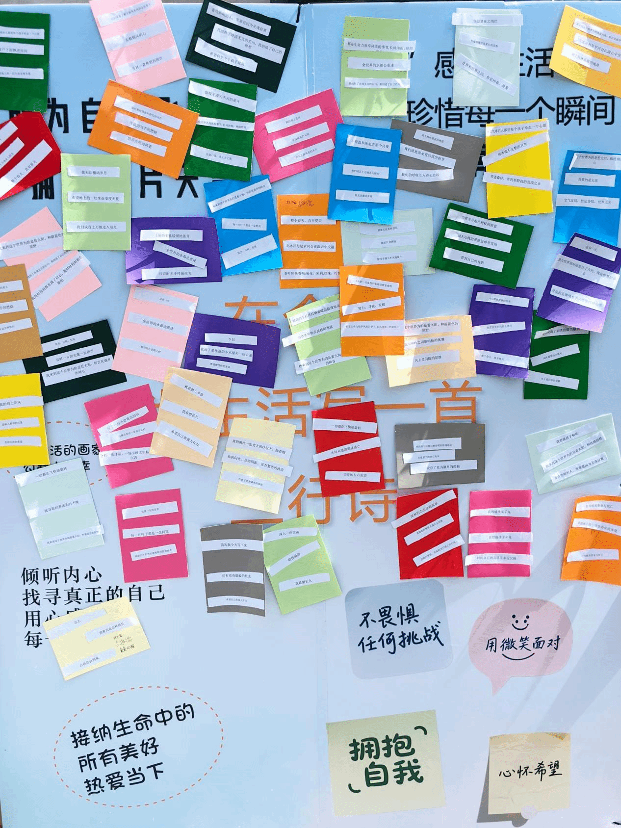 “材子心里话”系列活动之一,以三行短诗为载体,在诗句的拼贴组合中传达内心情绪,搭建了情感交流的平台,营造了关注心理健康、重视心理健康的氛围,助力学生德智体美劳全面发展。(撰稿:王敏 审核:韩铖)