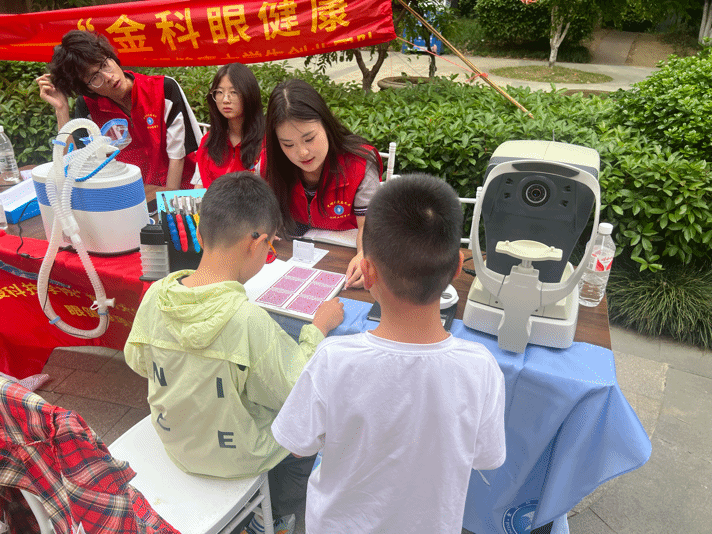 志愿者们在活动现场开展了以“童趣端午,爱眼护眼”为主题的志愿服务项目展示活动,为现场市民提供用眼护眼方面的知识科普,并提供验光矫正、色觉检查、眼镜清洗、镜架维修等志愿服务,现场众多市民尤其青少年纷纷驻足参与视力体验。