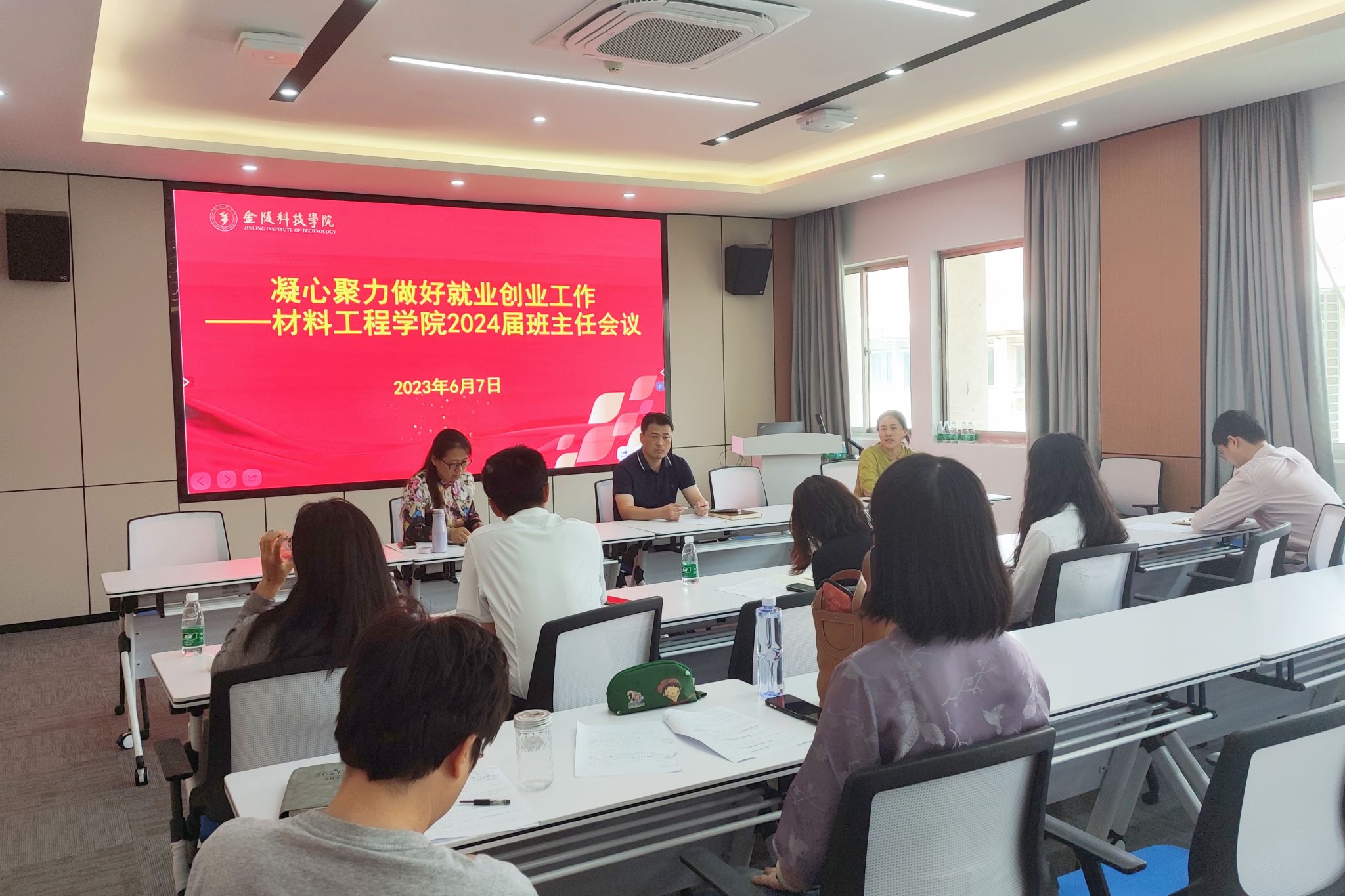 毕业生的就业特点,从考研、就业、考公考编、参军入伍等角度,结合具体数据和真实案例分析了当前的就业形势。随后,各班班主任依次汇报了本班同学的就业意向,并围绕稳就业、快就业、高质量就业等方面进行了深入的探讨与交流。同时,参会老师针对班级里的“考研热”、“考公考编热”、就业不积极等问题以及推荐毕业生就业工作的有效举措进行了充分讨论。