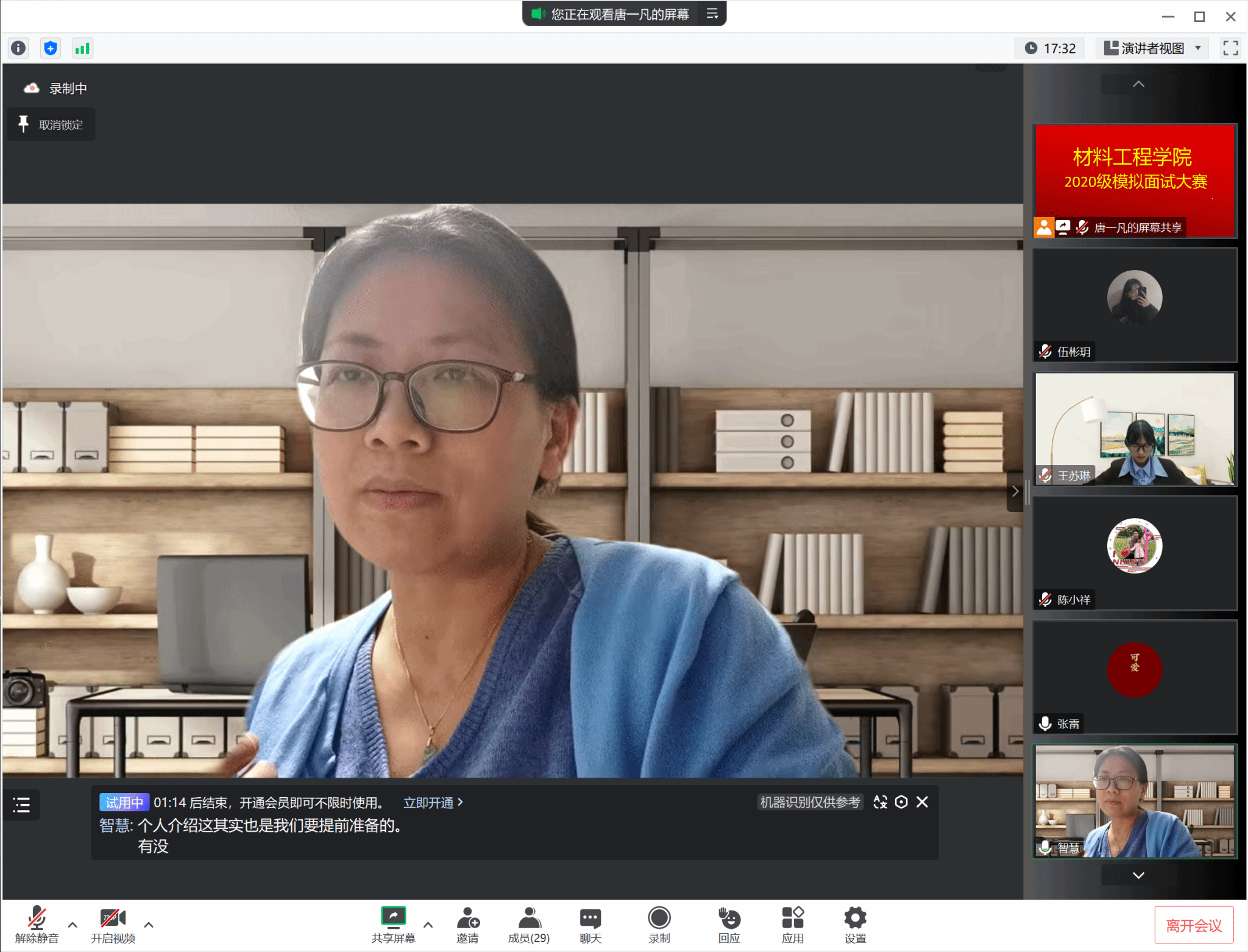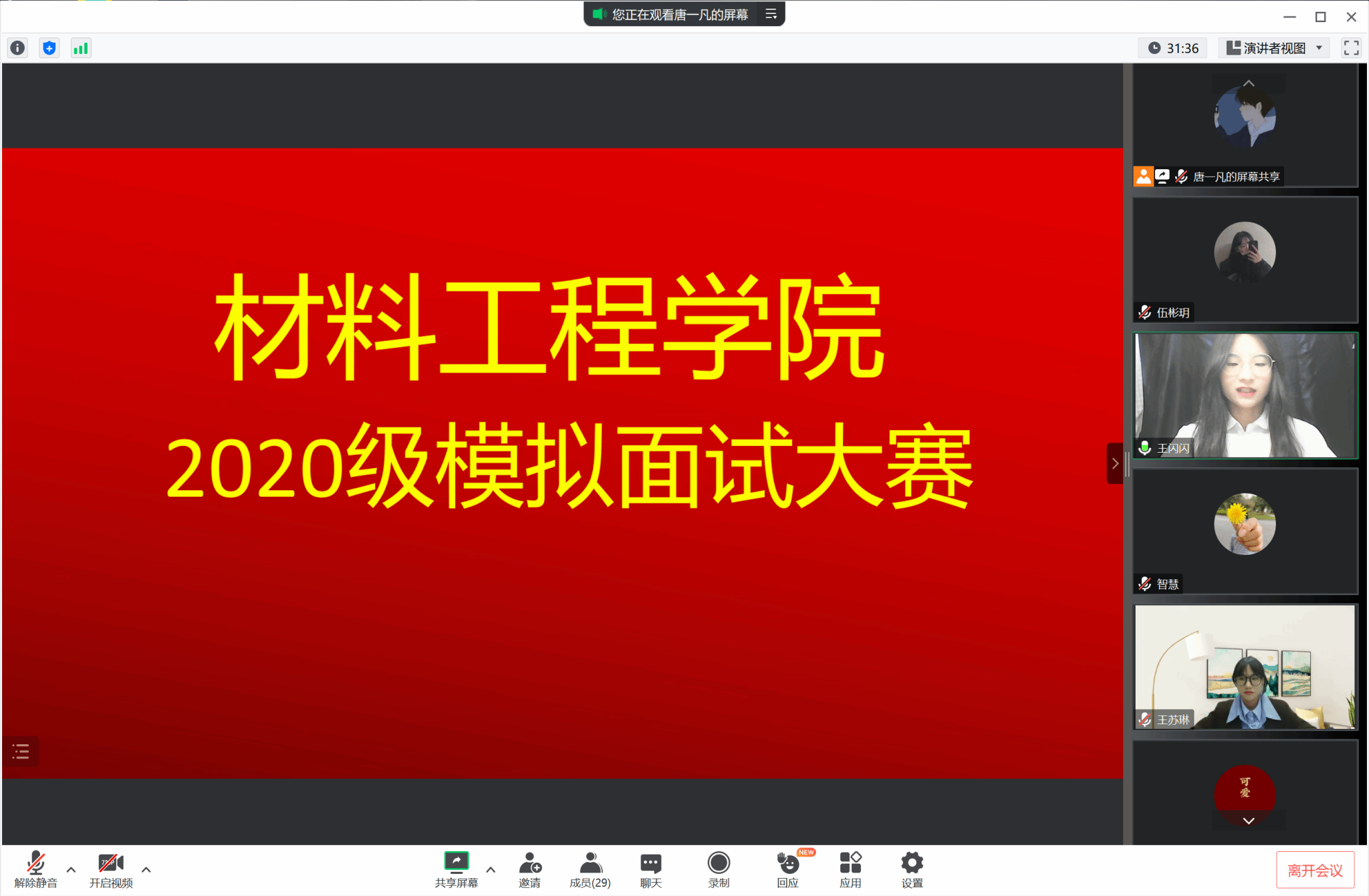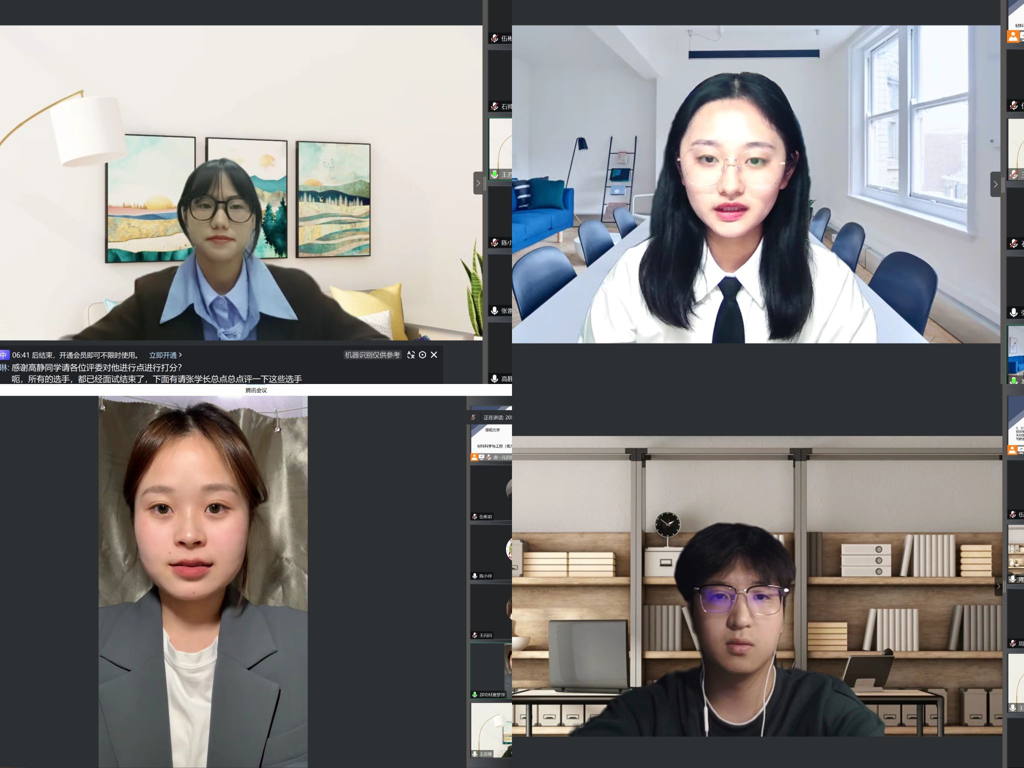 于4月21日晚在线上举办了模拟面试大赛。本次活动特邀校内、校外多名评委,校内评委是av解说