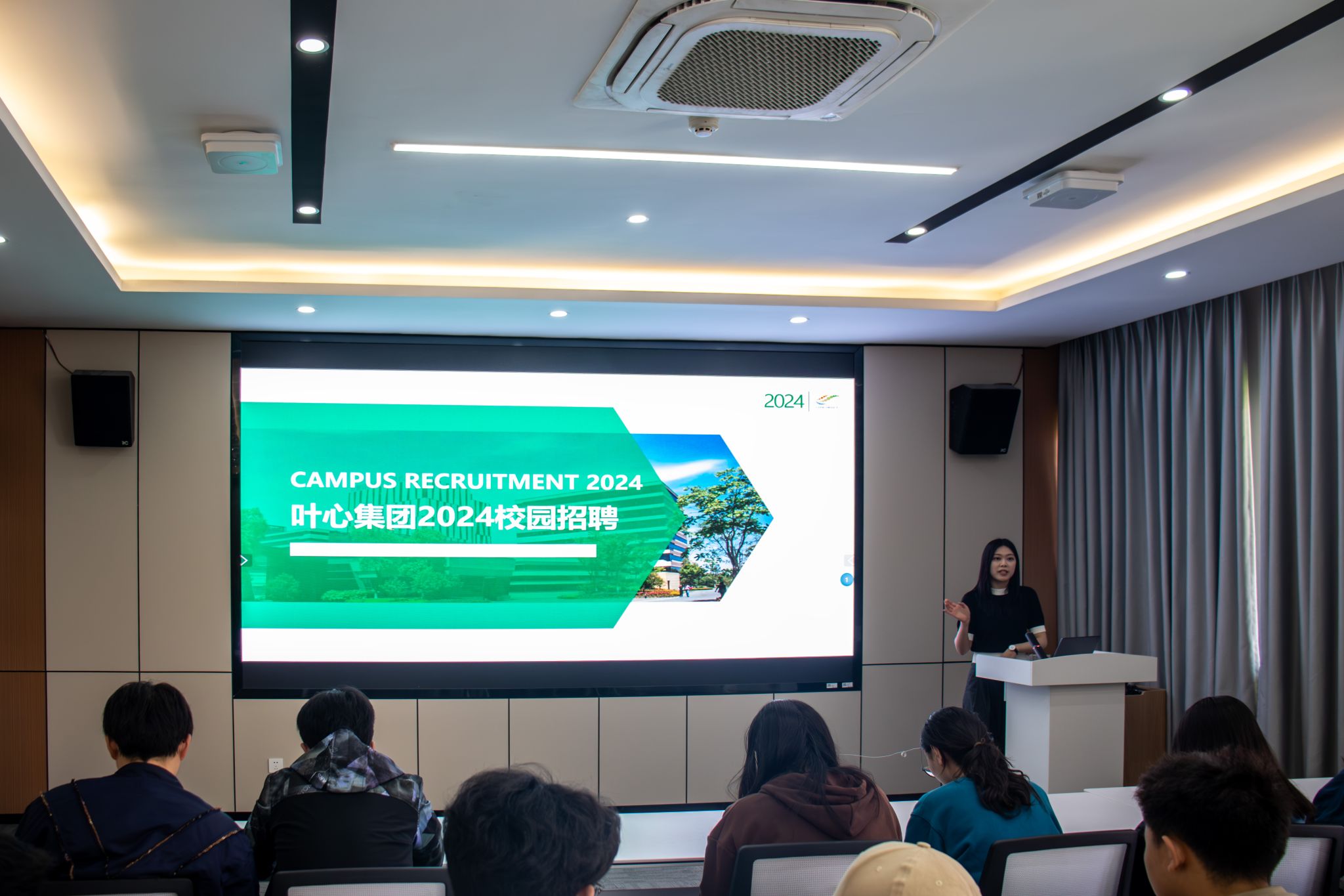 在知行楼A506会议室举办了上海叶心材料科技有限公司来校招聘宣讲会,公司负责人、就业干事华岚芳及毕业生们参与本次活动。