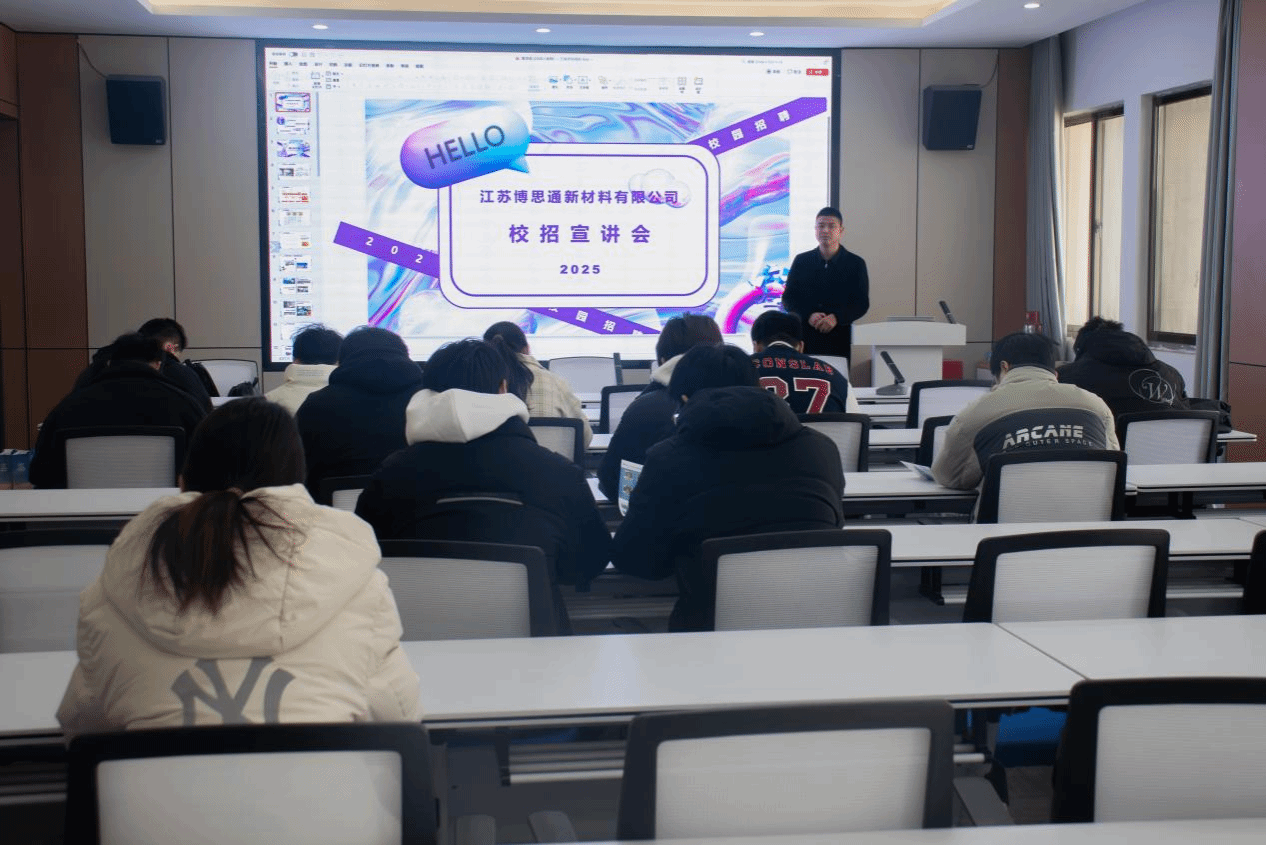 之间的深厚渊源,着重阐述了江苏博思通新材料有限公司在行业内独树一帜的发展优势。尽管面临疫情冲击与经济下行的双重压力,公司依然凭借强大的实力,实现了产值的强劲增长,充分彰显了其雄厚的企业实力。公司团队年轻且充满朝气,高度重视内部人才培养,全力营造平等、和谐且富有激情的工作氛围,并为员工提供优厚的福利待遇。公司业务广泛覆盖高铁、海工、民用等多个领域,以卓越的产品品质为国家重大工程建设筑牢坚实根基,展现出广阔的发展前景与强烈的社会责任感。在宣讲会尾声,付经理与同学们展开了热烈的互动交流,耐心解答同学们的疑问,为大家提供了极具价值的职业发展建议。