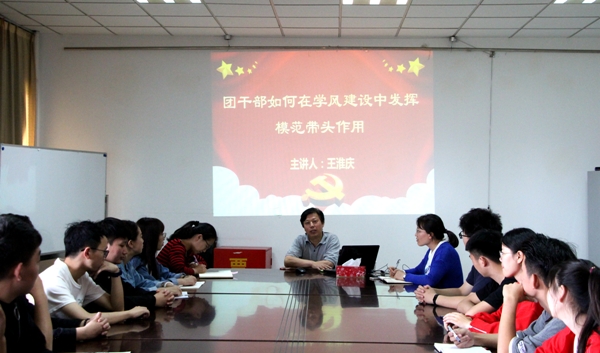在工科楼A503会议室召开“团干部如何在学风建设中发挥模范带头作用”动员会,我校退休教师王淮庆应邀参会,av解说