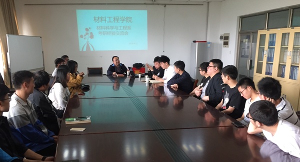材料专业为了让本专业的学生了解最新的考研详细情况鼓励大家为考研做好准备,分别于2018年4月11日、4月18日下午,在材料院工科楼会议室A504开展考研经验交流会。交流会由17专转本、15材料单招班的同学参加,材料系系主任林青、王威老师出席本次会议。