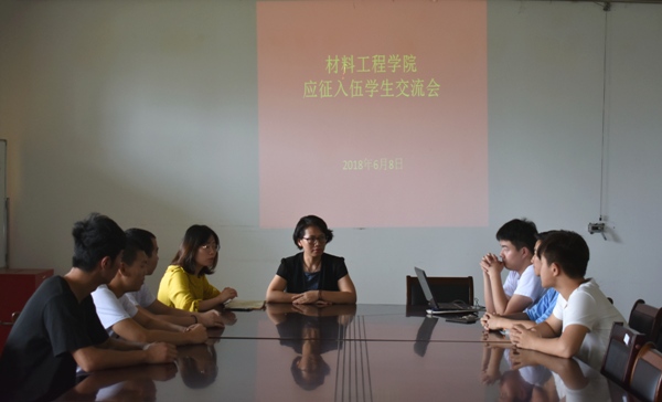 在工科楼会议室召开应征入伍学生交流会。av解说