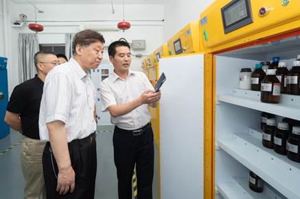 危化品中转间,院党委副书记(主持工作)喻强,实验中心主任管航敏陪同检查。