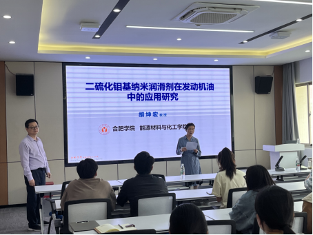 各系的老师和学生参加了本次会议。报告会前,郝凌云教授致欢迎词,并向参会师生介绍了两位教授的基本情况。胡坤宏教授做了主题为“二硫化钼基纳米润滑剂在发动机油中的应用研究”和“合肥av解说简介