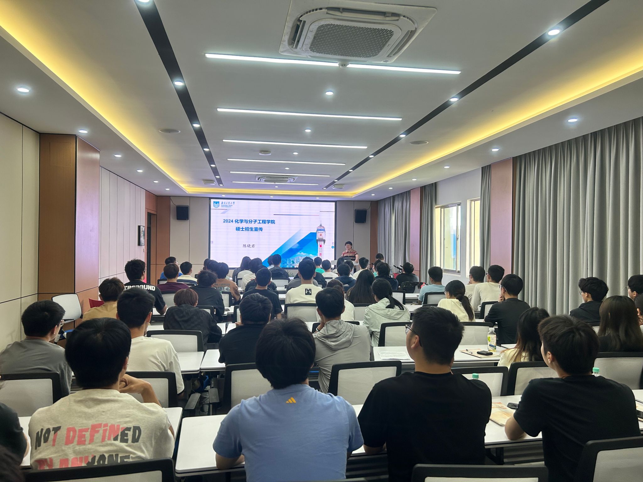讲座伊始,陈晓君围绕南京工业大学化学与分子工程学院的发展情况展开,着重介绍了学院的校企平台、先进设备、师资科研团队及其研究方向。接着,列举了往届研究生的工作去向,就同学们最关注的就业问题做出了解答,她强调,只要刻苦钻研,未来的就业前景一定十分广阔。最后,诚邀所有对材料科学充满热情的学子们加入工大的行列,一起探索材料科学的无限可能。同学们在讲座现场积极互动,纷纷表示此次讲座为他们提供了宝贵的指导和帮助。