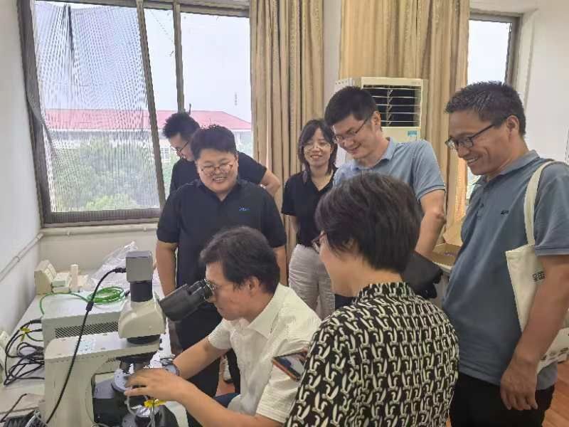 院长叶原丰和珠宝系负责人蔡逸涛向果果仪器科技(上海)有限公司表示热烈欢迎,向三位邀请专家对学院的支持表示感谢。随后,总经理汪金文向学院捐赠了用于成矿流体研究的高精度冷热测量台,就筹备成矿流体及矿物材料新质生产力转化工程中心进行交流讨论,实现产学研融合基地搭建。