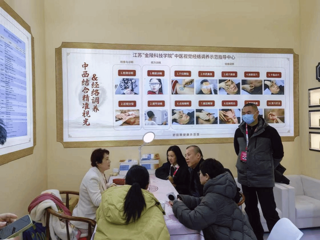 眼视光学专业负责人刘宜群教授团队与镇江舒目医疗科技公司联合打造的“中医视觉眼健康生活馆”成为展会焦点,吸引了逾5000人次参观,现场咨询络绎不绝,合作意向频达,引发行业广泛关注。