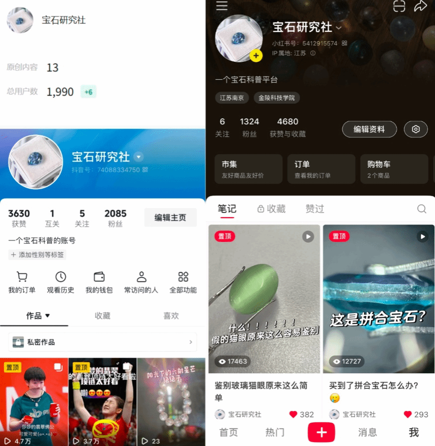 2024年,团队开启平台建设与内容输出。以微信公众号、小红书、抖音为核心新媒体矩阵,打造集知识科普、互动交流、宝石展示推广于一体的综合性科普平台:微信公众号作为主载体,传播专业知识、破除认知误区;小红书搭建爱好者交流基地,促进知识分享;抖音开设科普直播、发布趣味视频,打造权威可信的科普账号,同时组织线下展览参观活动。2025年,团队探索商业化路径,在科普基础上售卖相关产品,推出水晶手串、吊坠等定制化服务,还上线会员制,为付费会员提供独家文章、高清图片、视频教程、线下活动优先参与权等特权。
