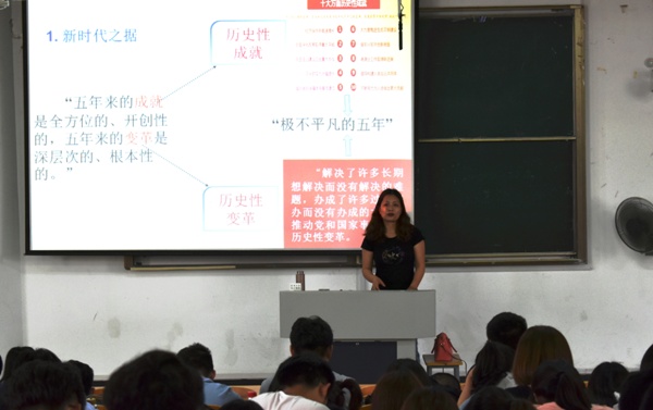 在7300教室举办“中国特色社会主义的新航向——学习党的十九大精神”专题讲座。本场讲座特邀马克思主义学院董娜老师主讲。